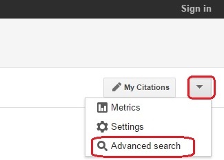 In order to get to the advanced search box in Scholar you have to perform one search on the main screen in the single search box to get your results page and then on the top right of the screen is a small, greydownward pointing arrow.